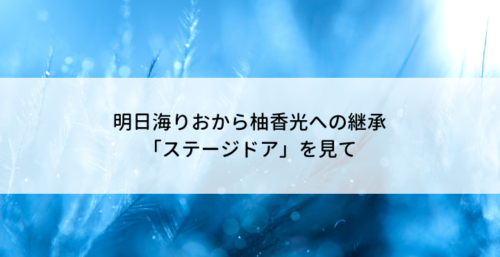 特に結構思い入れが強かった花組の明日海りおさんや星組の紅ゆずるさんが退団されて、寂しさを感じて、